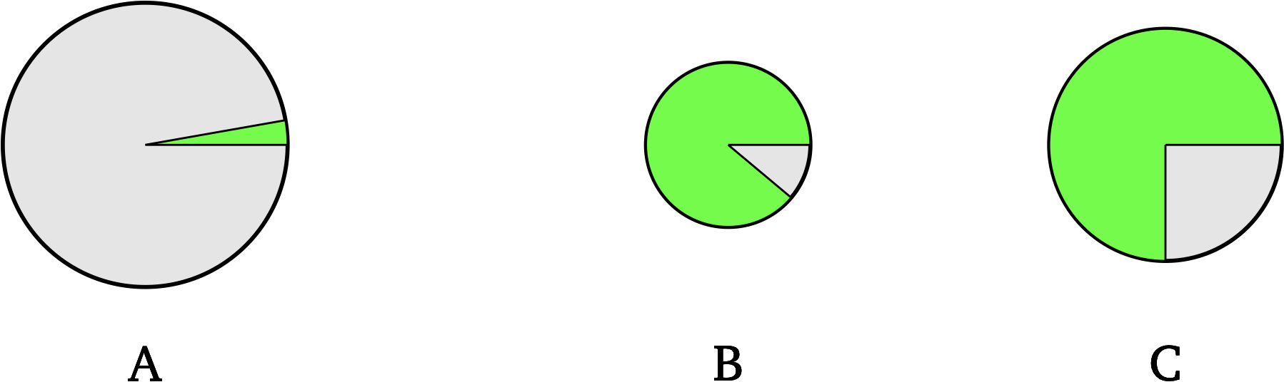 Why not B? It’s the circle with the greatest proportion of green. Yes but it’s smaller than C, enough so that its green area is smaller than C’s. And it’s green area that matters to the decision.